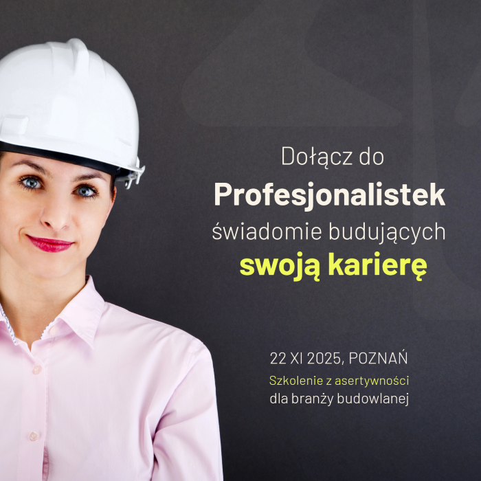 Choć tytuł wydarzenia wskazuje płeć żeńską („Asertywna…”) jako główną grupę docelową, to tak naprawdę poza wątkiem, dotyczącym wpływu kulturowego na asertywność kobiet, program szkolenia jest odpowiedni dla wszystkich, zainteresowanych tematem asertywności oraz pracujących w branży budowlanej 😉